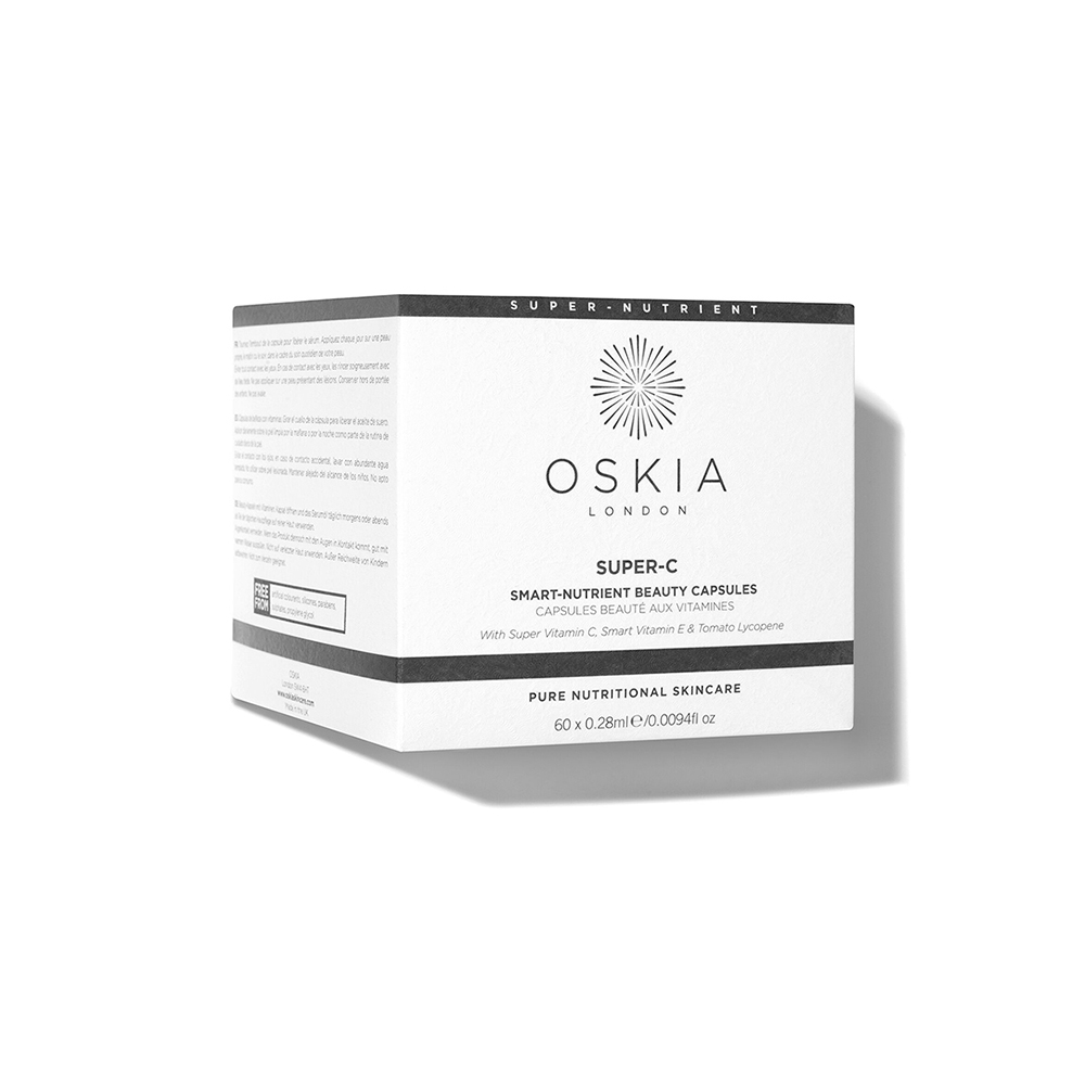Oskia Super C Smart Nutrient Beauty Capsules provide a daily dose of radiance for the skin. Their coating helps to preserve the integrity of the ingredients inside, which makes them ideal for use while travelling.